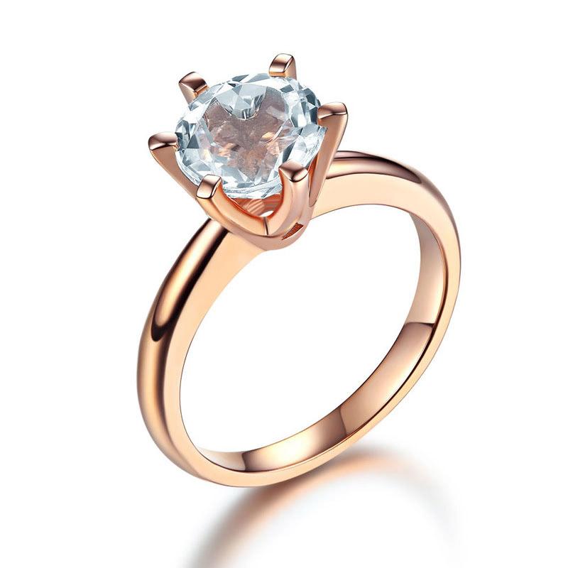 14K Rose Gold Bridal Wedding Engagement Solitaire Ring 2 Ct Topaz 6 Claws KR7125