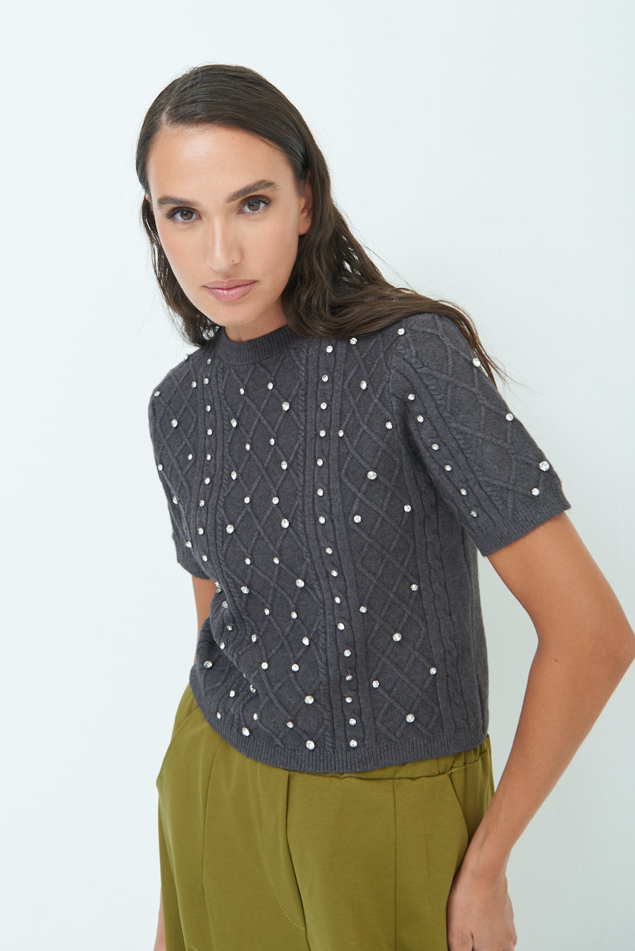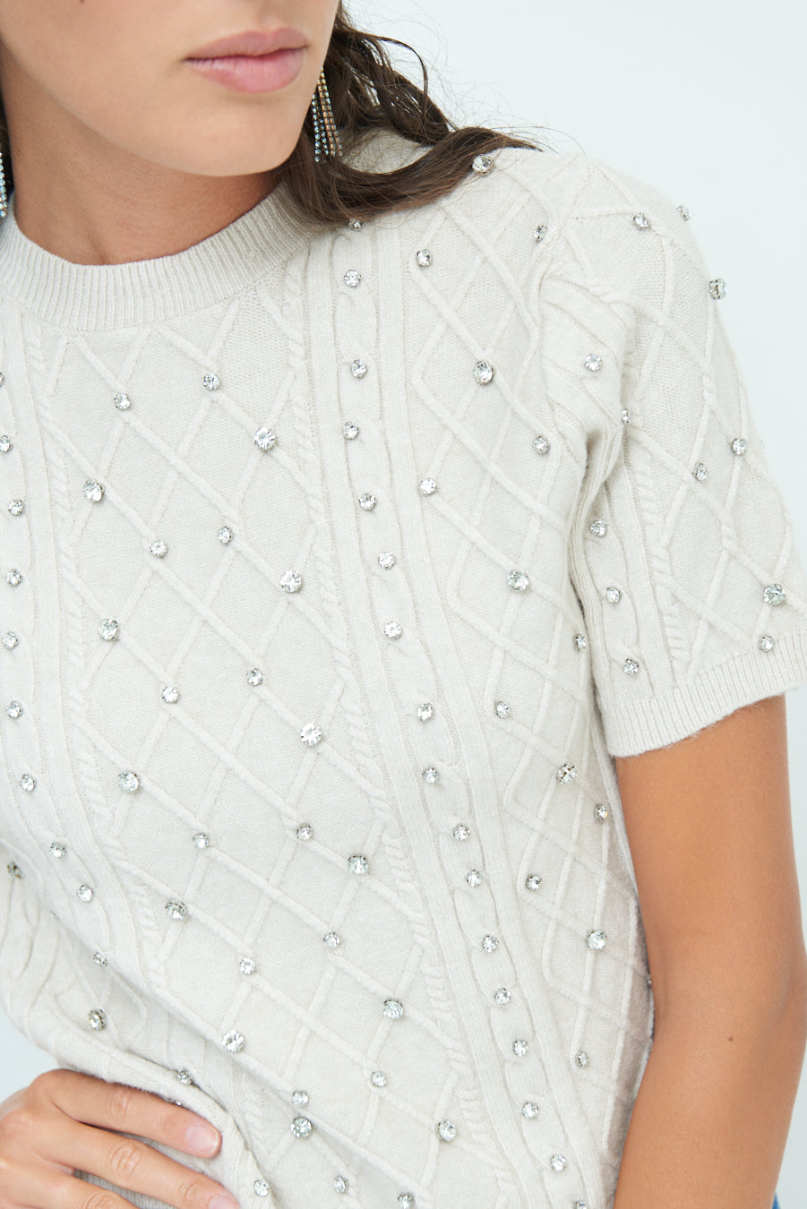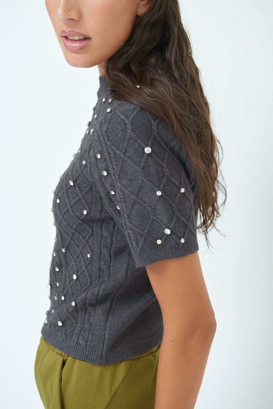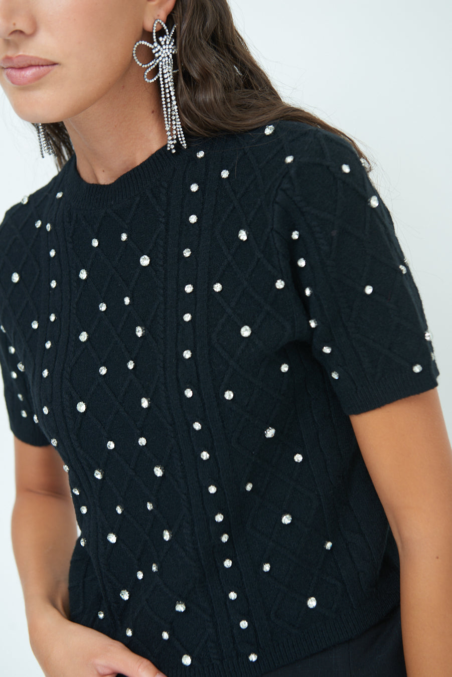 Pearl embellished short-sleeve knit top wholesale