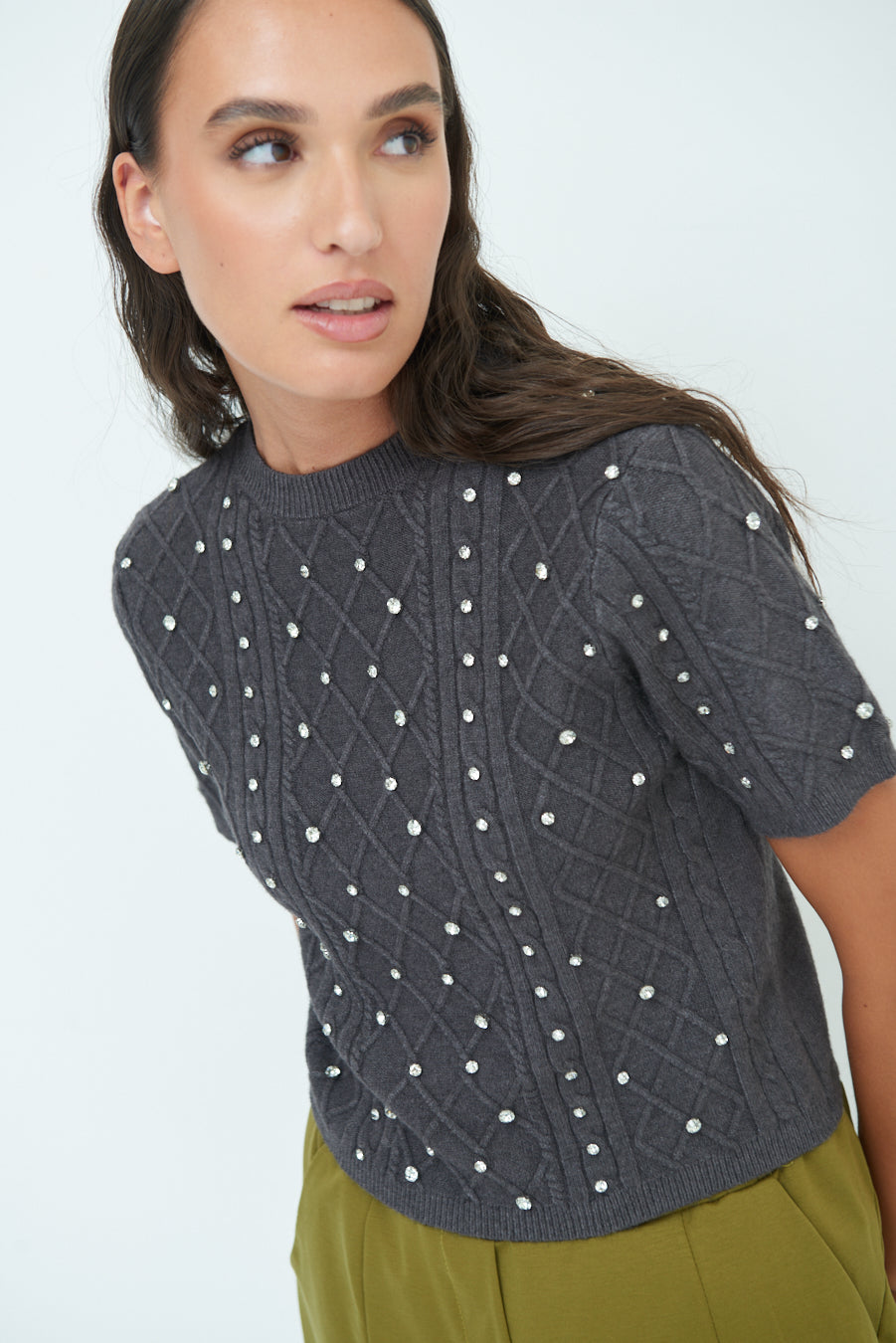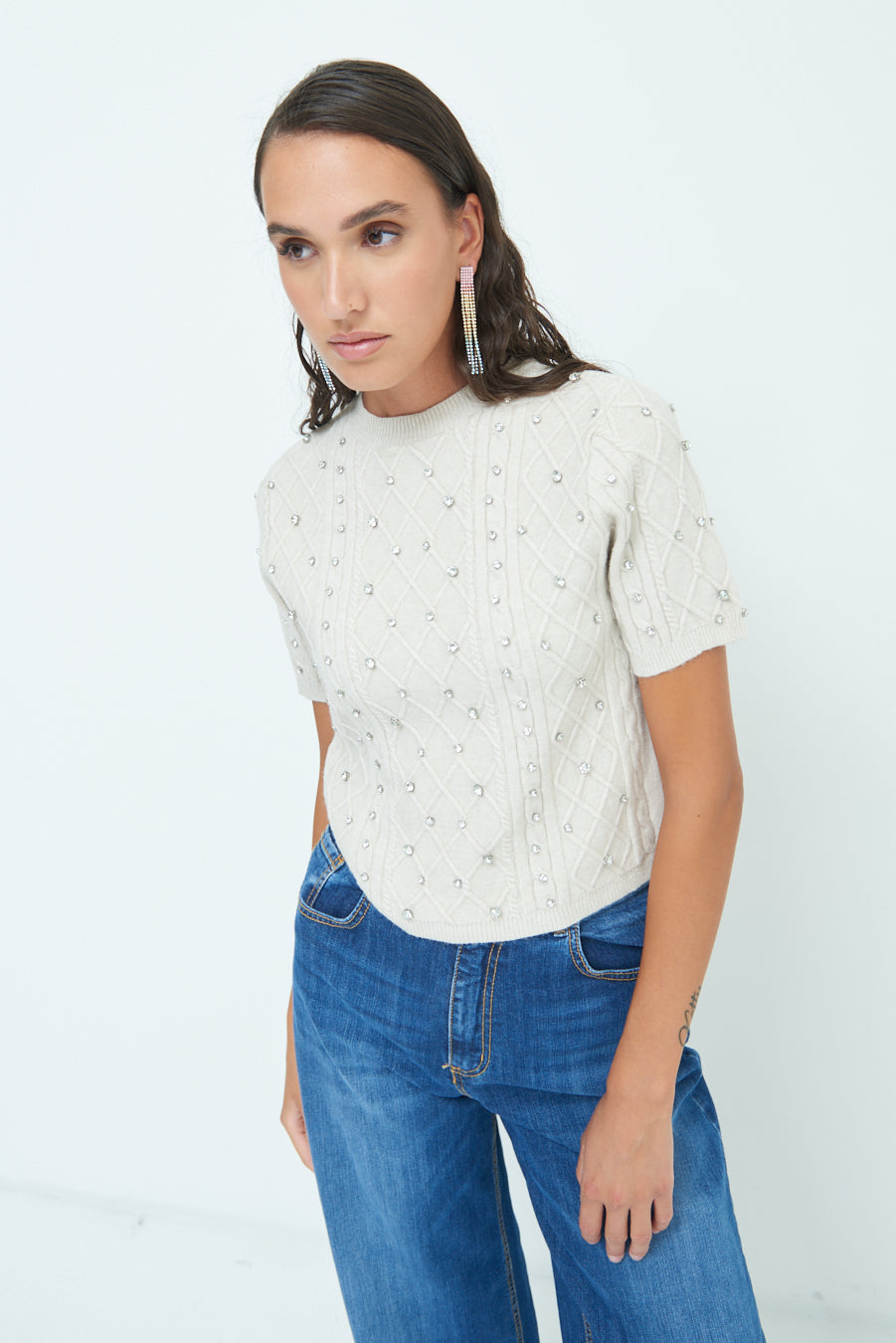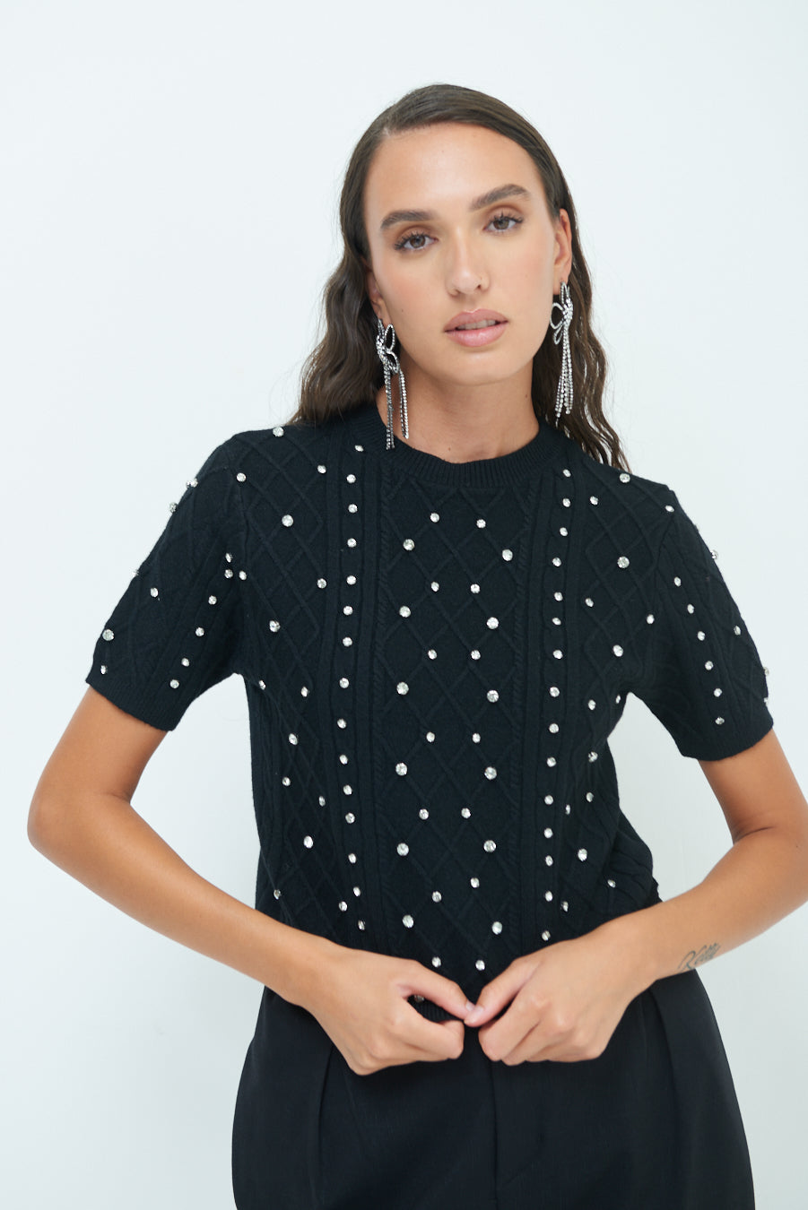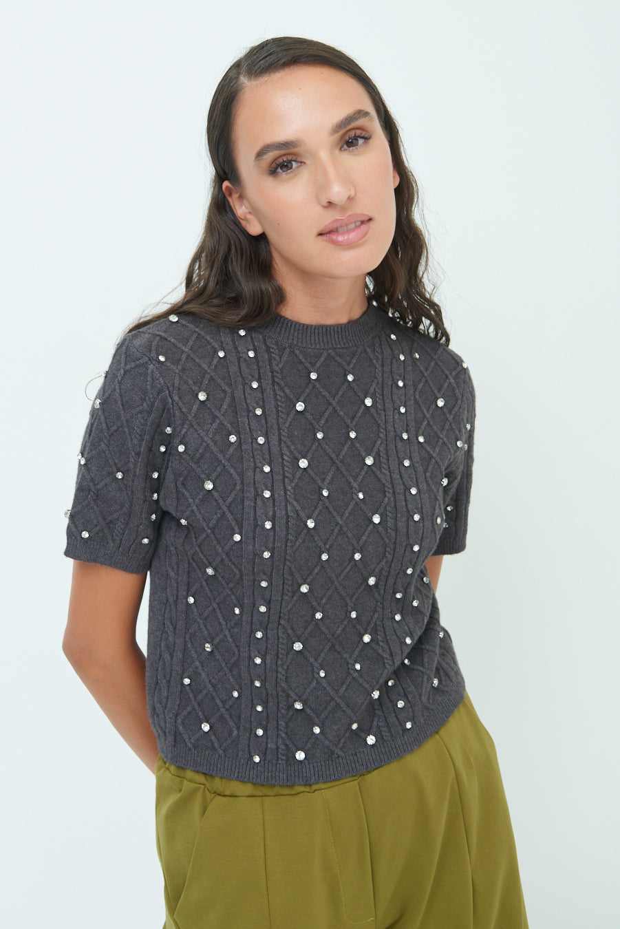 Pearl embellished short-sleeve knit top wholesale