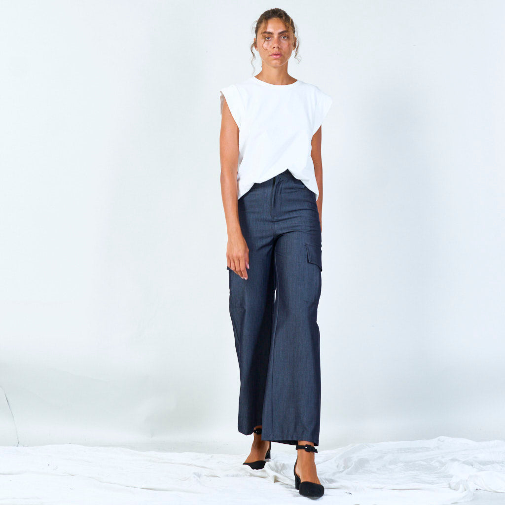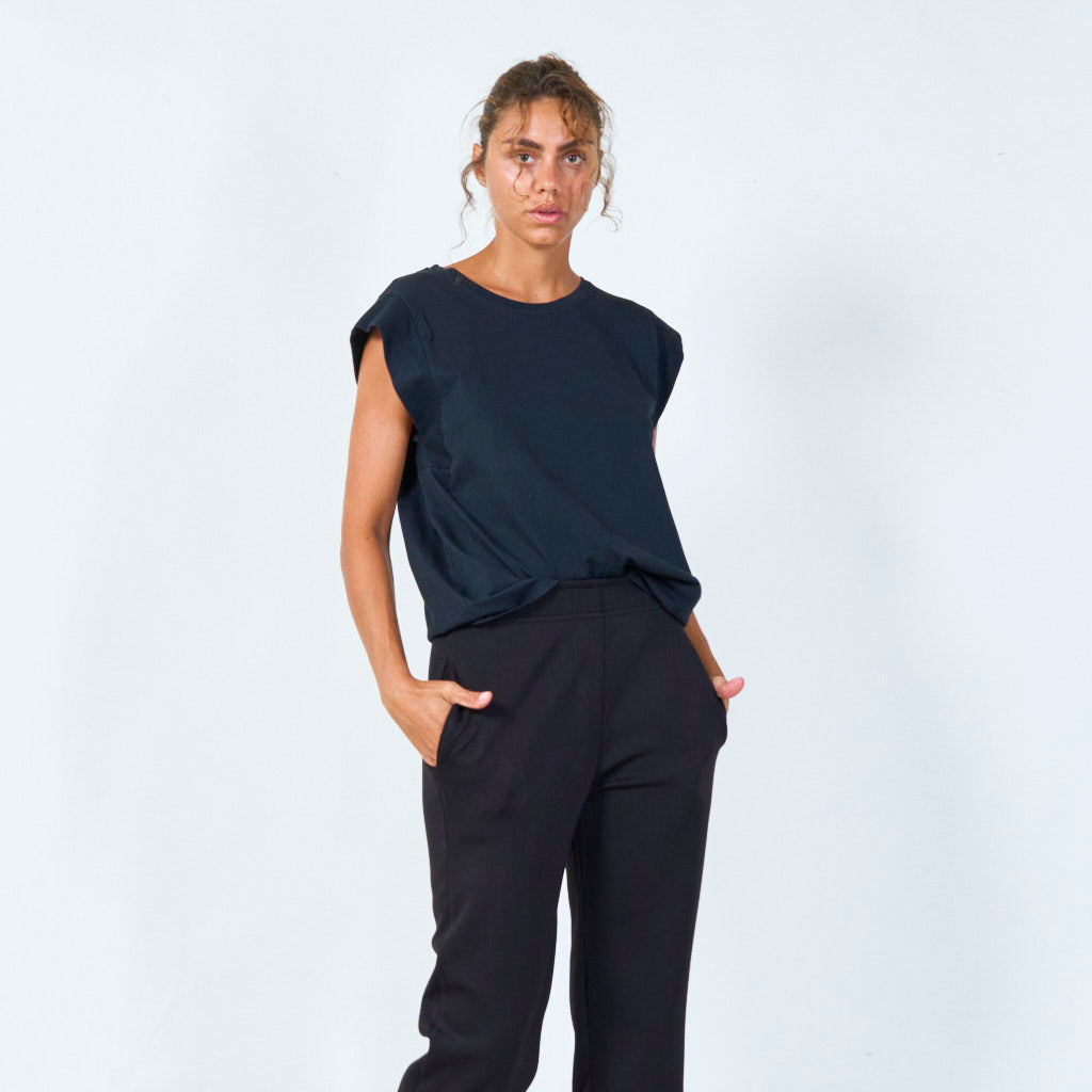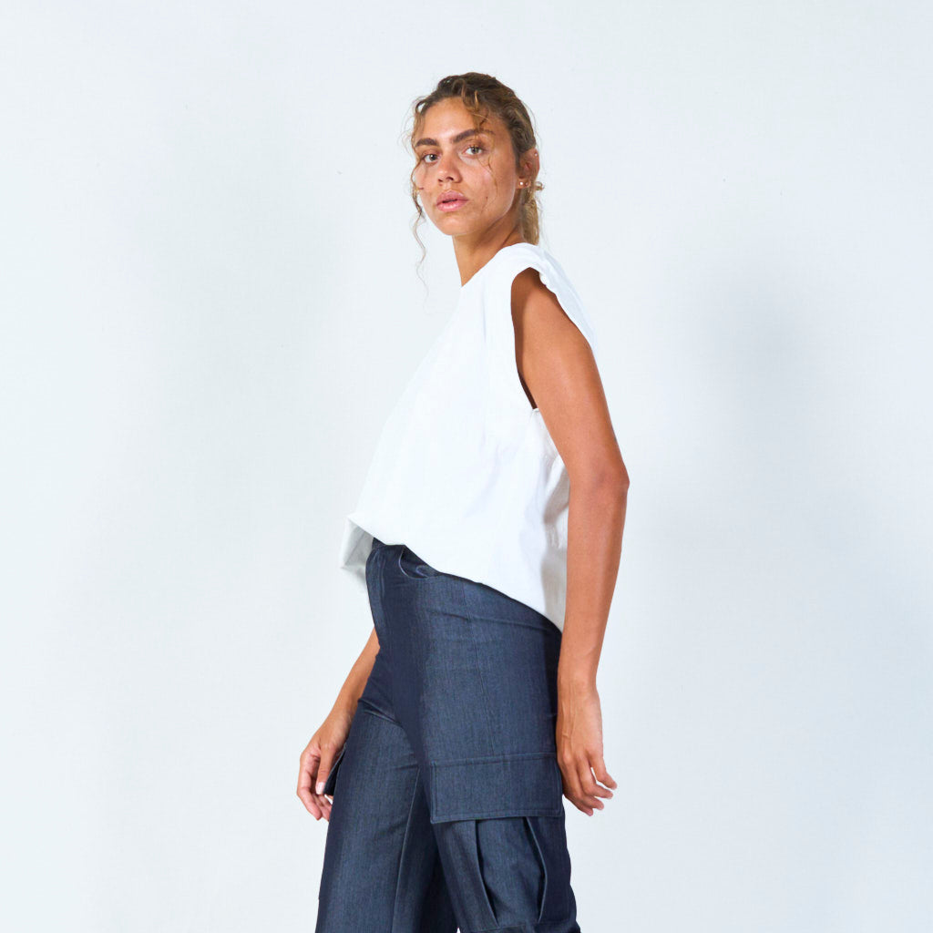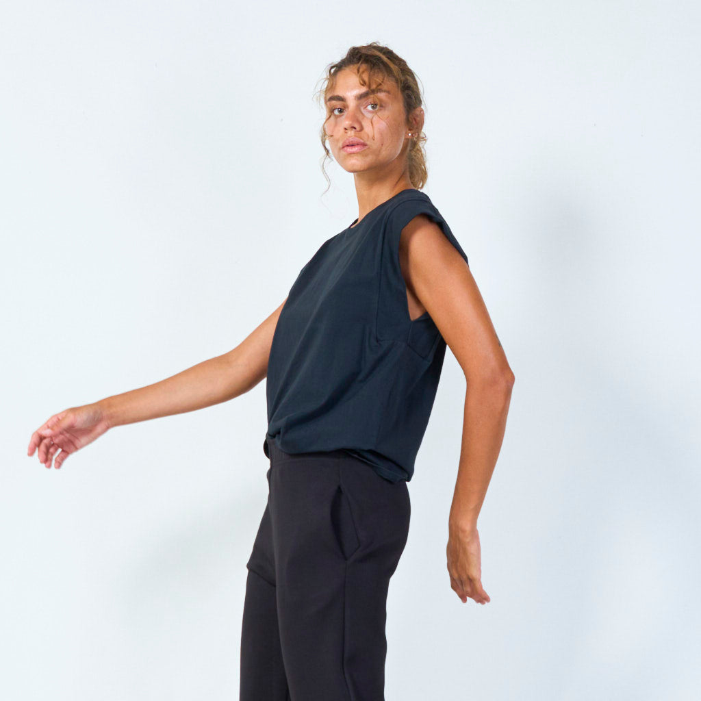 Sleeveless cut with wide shoulders for a bold look