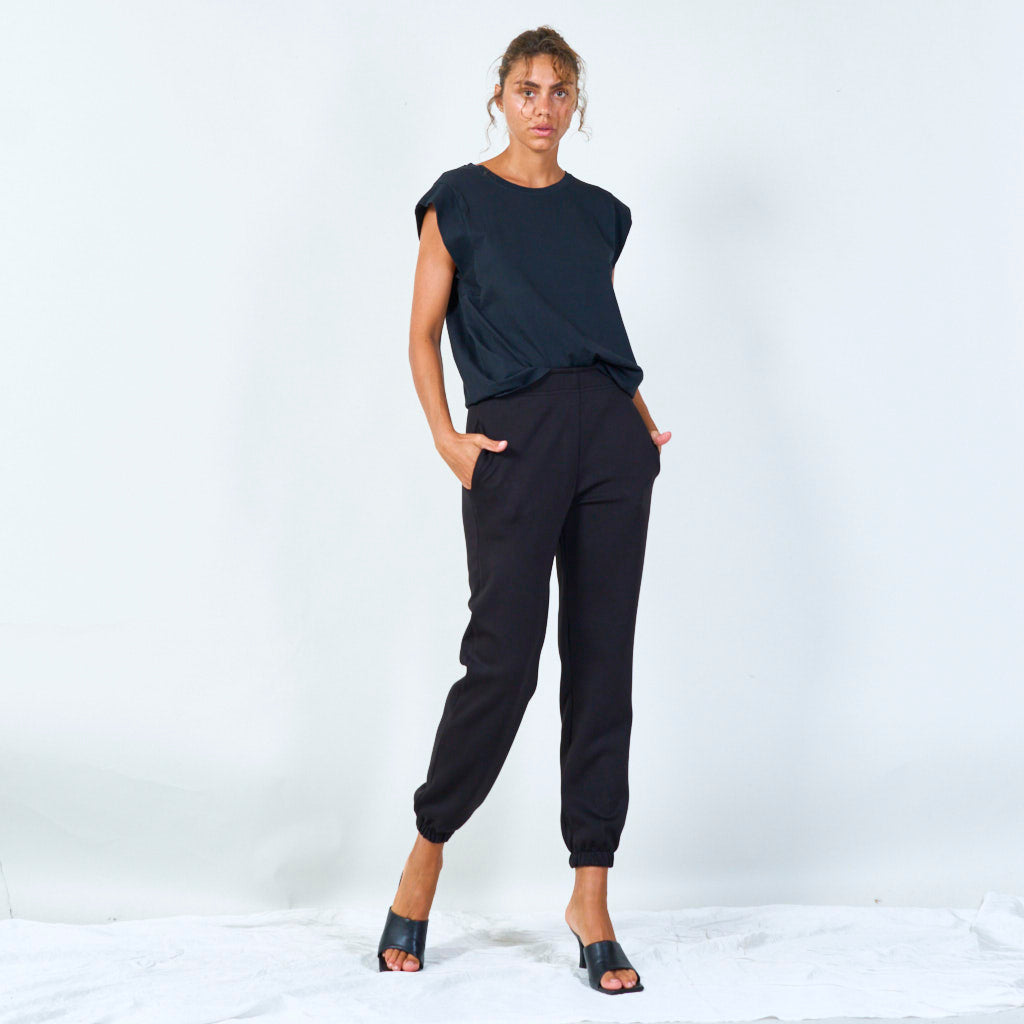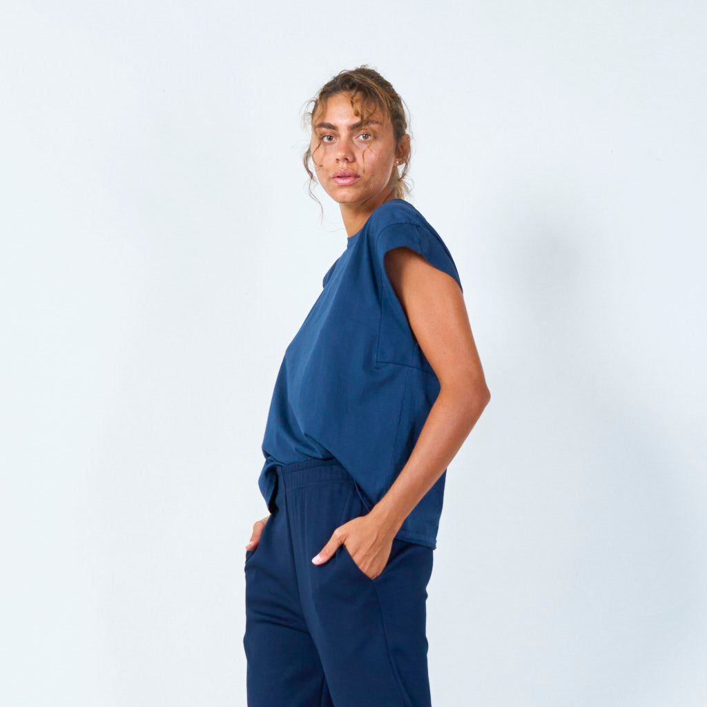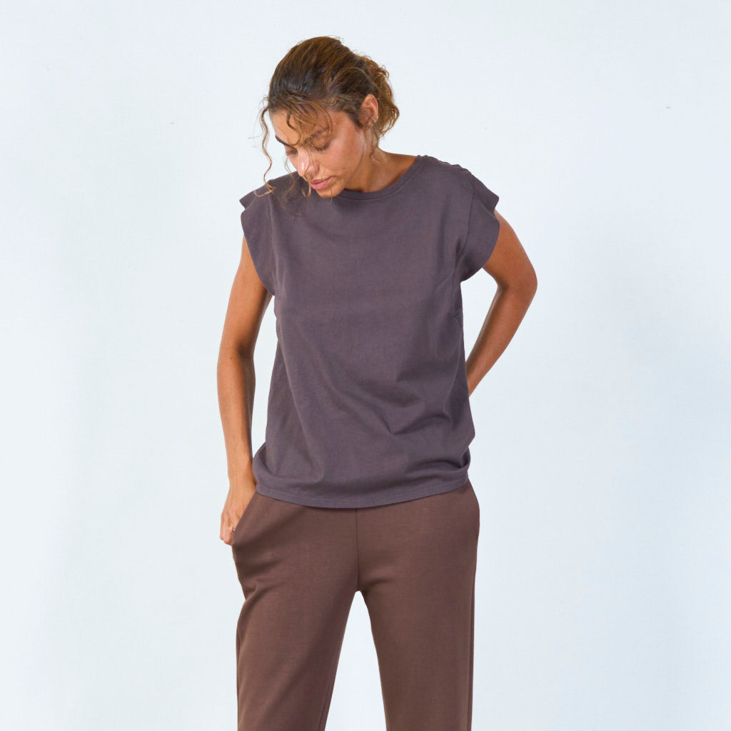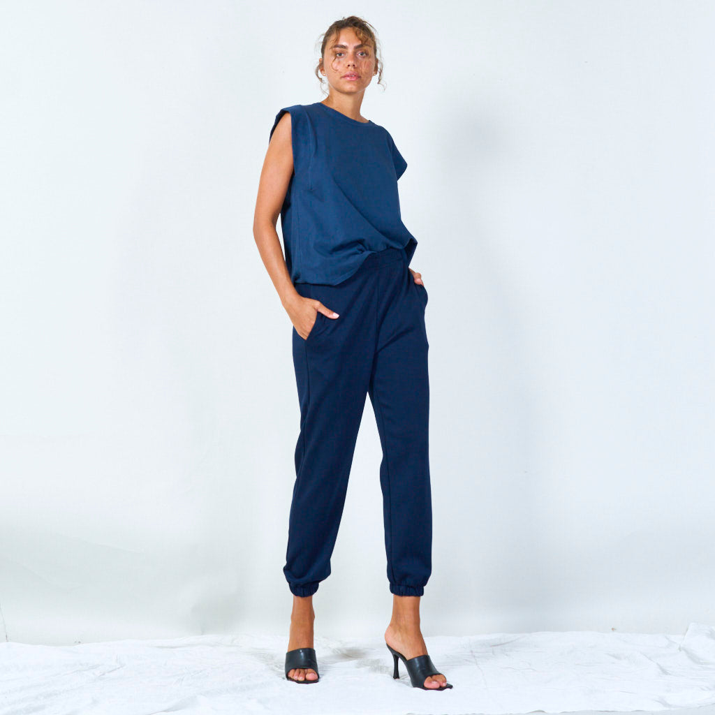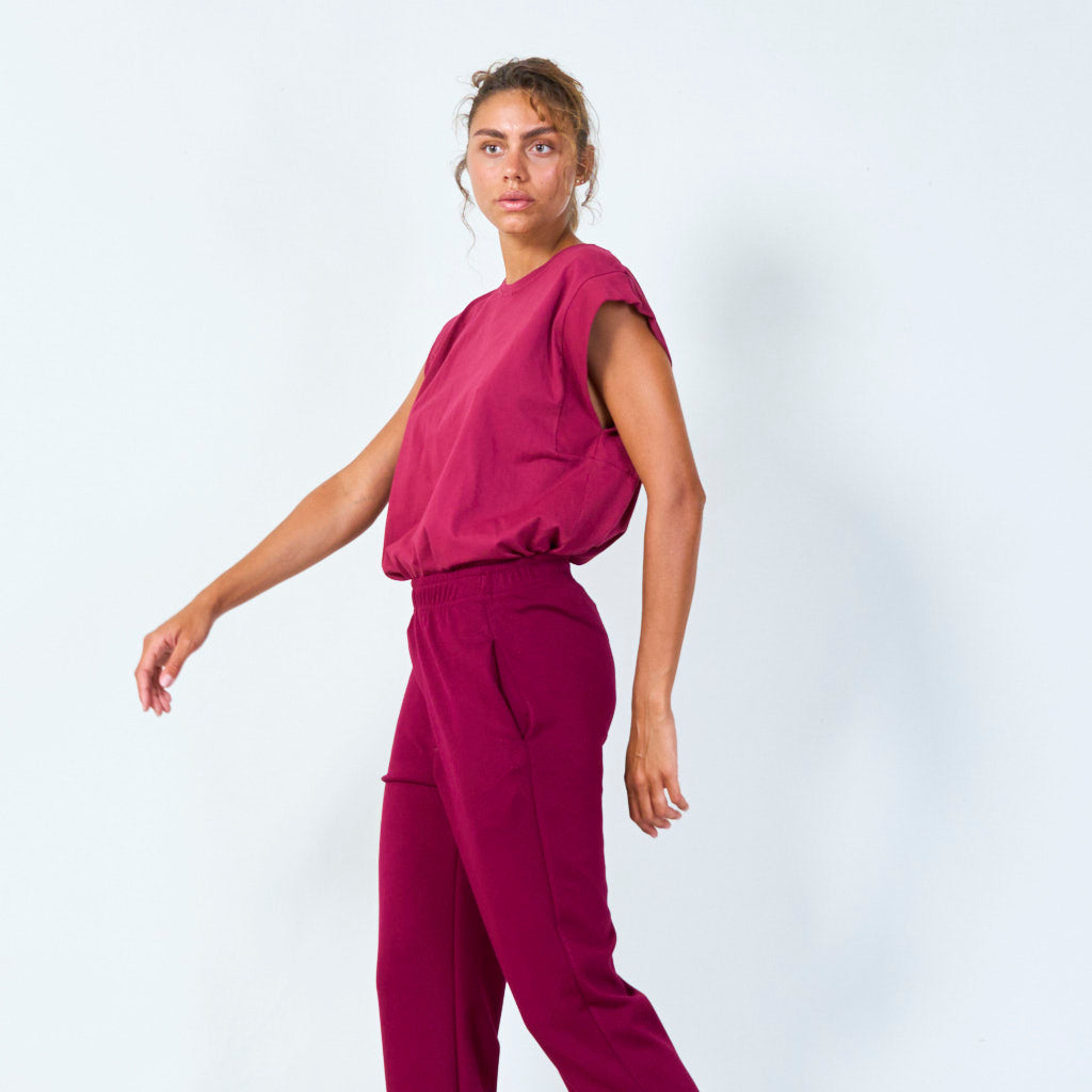 Sleeveless cut with wide shoulders for a bold look