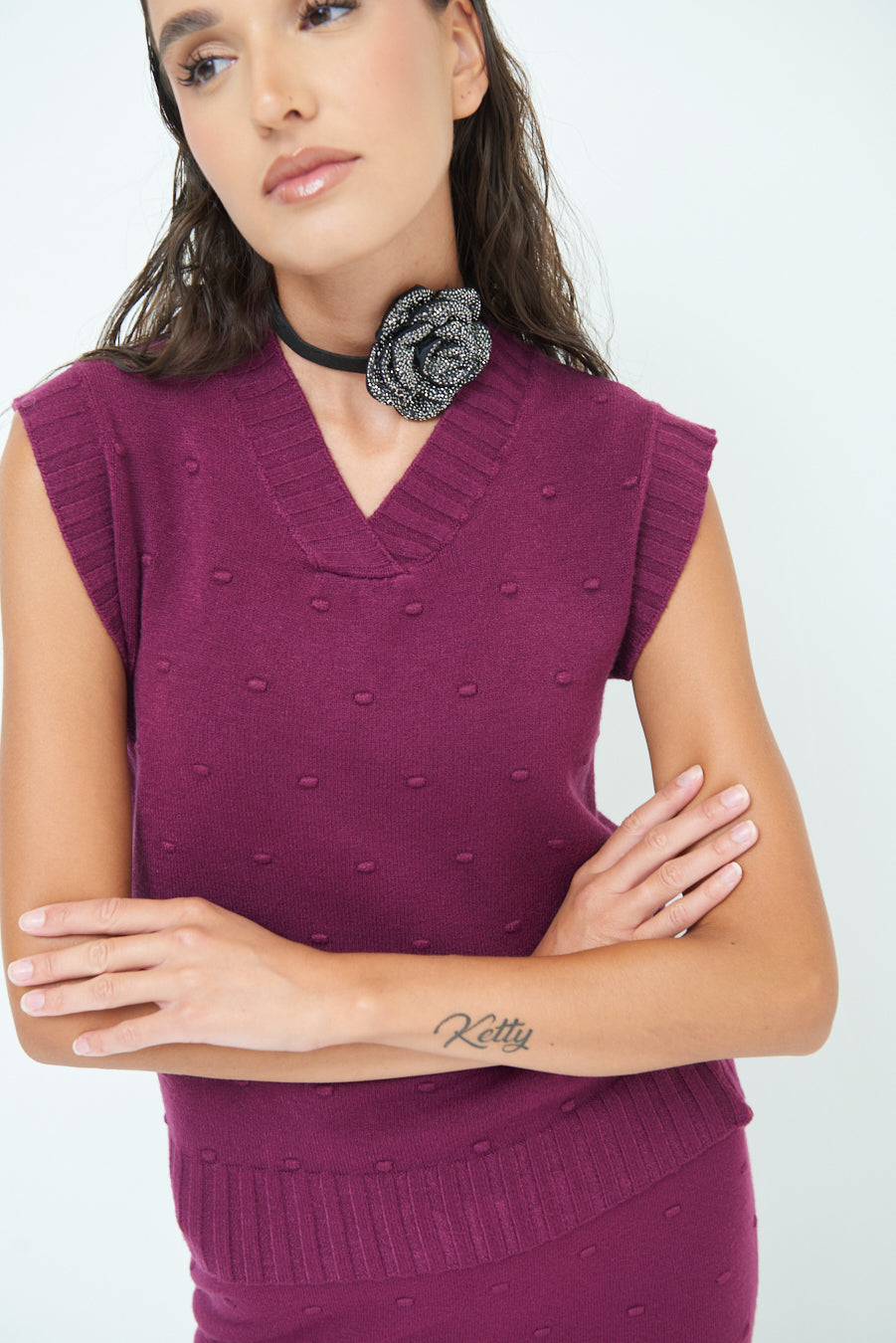 Sleeveless knit top with textured pattern wholesale