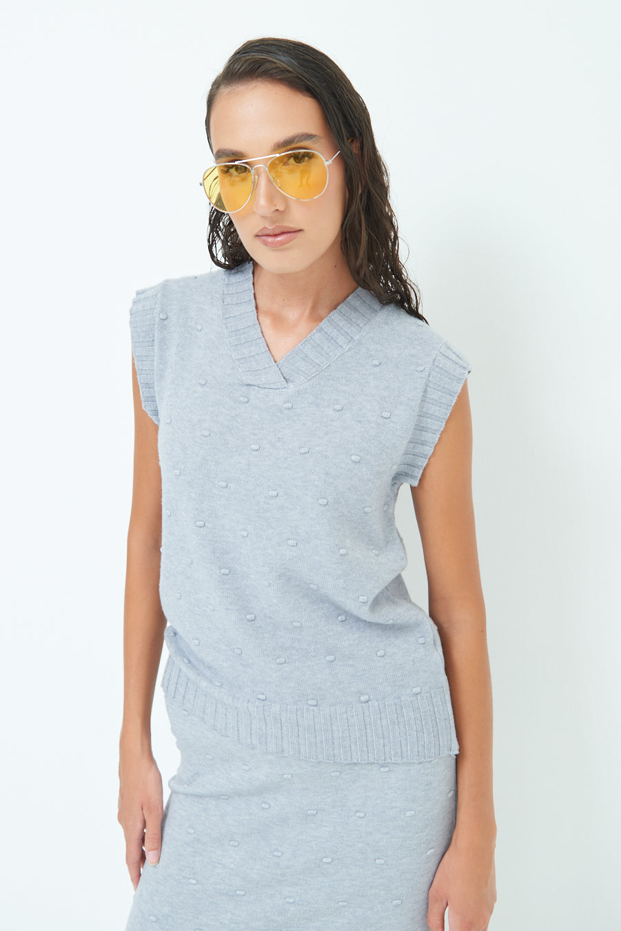 Ribbed V-neckline and armholes