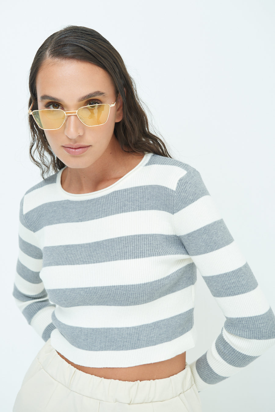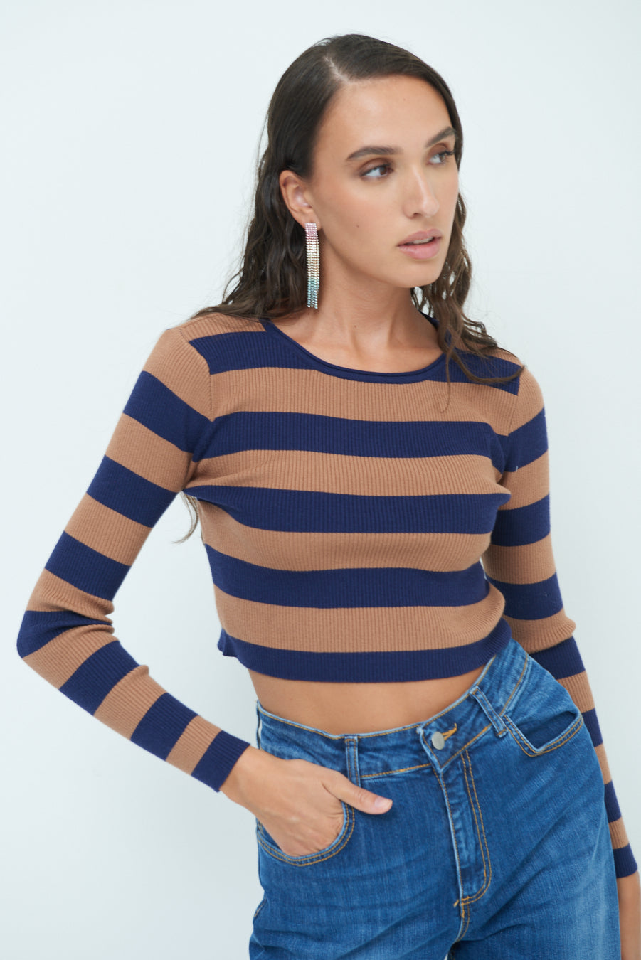 Striped ribbed crop top wholesale